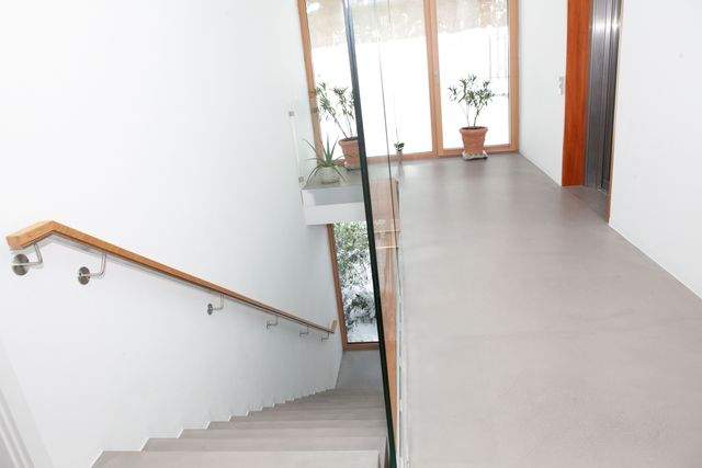 | Wohnanlage | - Baujahr: 2023 - Zustand: Neubau - KfW 55-Effizienzhaus in Ziegelbauweise. - Umweltschonende Pelletsheizung-Co 2 neutral. - Niedertemperatur-Fußbodenheizung. - zentrale Lüftungsanlage mit Wärmerückgewinnung. - eigene Wasseraufbereitungsanlage. - Eingangsbereich mir Pandomo-Betonbodenoptik. - offenes,großes Treppenhaus, mit Glas gestaltet. - Personenaufzug, mit Glastüren. - der Erwerb von mehreren Stellplätzen in der TG ist möglich. - Möglichkeit für E-Ladestation an jedem TG-Stellplatz. - modernste Haustechnik mit höchster Energieeffizienz. |